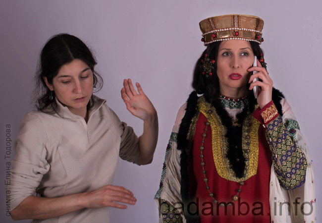 Костюмът на прислужницата е сборна рекострукция по некропола в с. Янтра (XIVв.), по-конкретно по гробове 100, 121 и 127.
